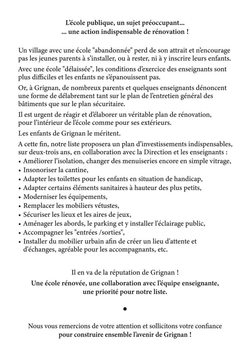 Voici notre "Profession de foi" pour cette campagne électorale.
