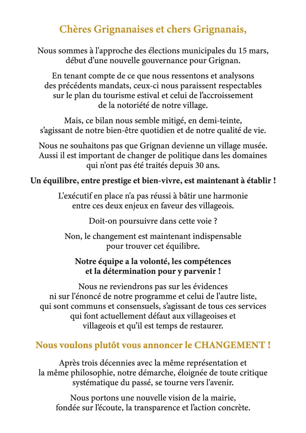 Le 15 mars, choisissons ensemble une équipe unie, prête à agir pour notre village.
