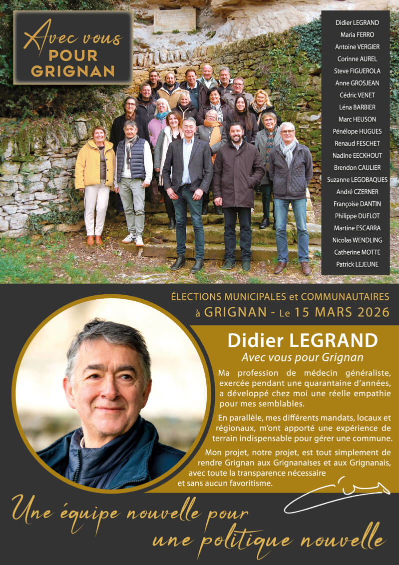 Avec Vous pour Grignan, une équipe nouvelle pour une politique nouvelle.